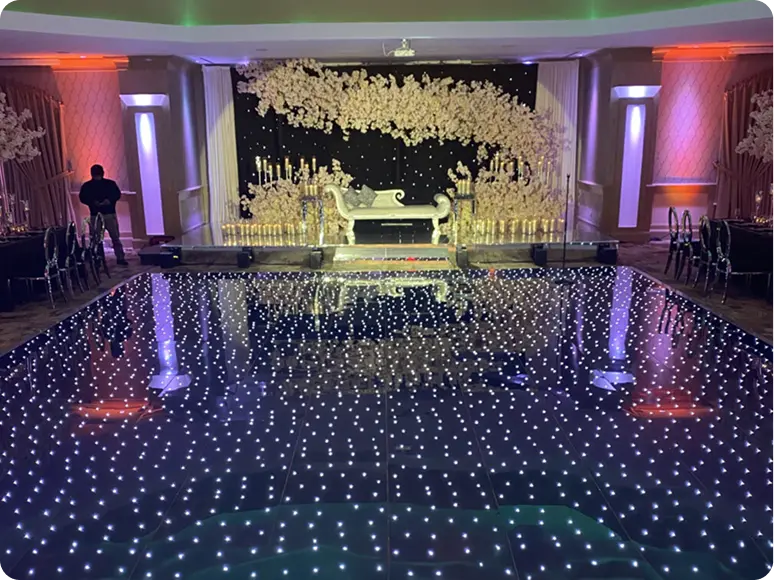 A bold, modern dance floor with embedded starlight LEDs that sparkle under low light. Perfect...