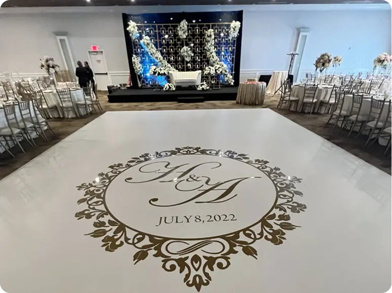 Dance floors are modular and scalable. We’ll size the setup based on your venue layout and guest count.